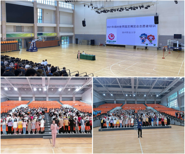 按照扬州世园会组委会的统一部署,必赢官网于5月15-16日在体育馆组织开展了志愿者培训工作。500多名世园会志愿者参加了此次培训。