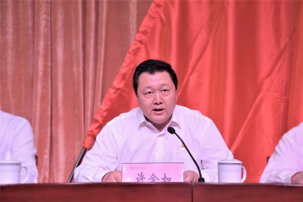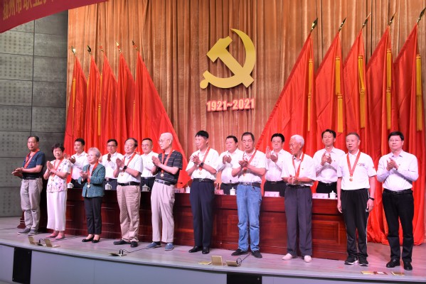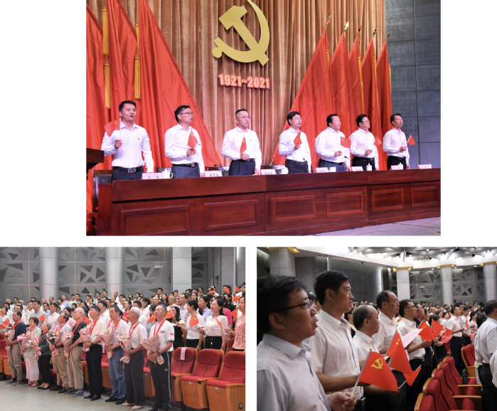 为庆祝中国共产党成立100周年,充分发挥先进典型示范引领作用,6月30日下午,在庄严的国歌声中,学校庆祝中国共产党成立100周年暨表彰大会在映月学术报告厅隆重举行。党委副书记、校长潘锦全出席大会并发表讲话,党委副书记、副校长许金如主持大会。校党委委员、副校长陈亚鸿、刘宏,校党委委员、纪委书记黄华明,校党委委员、组织(统战)部部长华炜,校党委委员、宣传部部长花军,全体中层干部、受表彰单位和个人、“光荣在党50年”老党员代表、新发展党员代表共240余人参加大会。
