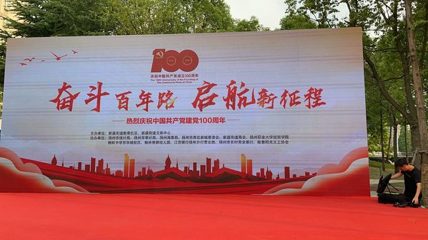 日前,在京华城怡景苑西门广场,由新盛街道殷巷社区主办,必赢官网经济贸易学院等单位协办的“奋斗百年路,启航新征程”庆祝建党100周年文艺晚会正式拉开了帷幕。
