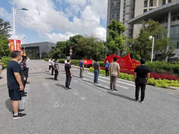 8月17日上午,学校校园疫情防控临时党支部在图书馆广场西侧石榴树下召开全体党员大会,重温入党誓词。