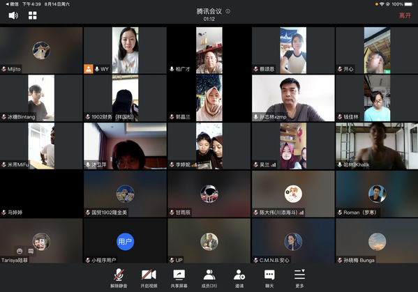 8月14日下午4点,国际交流学院组织33名在校留学生在腾讯会议平台开展“齐心抗疫 扬州加油”主题班会。