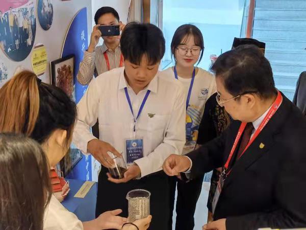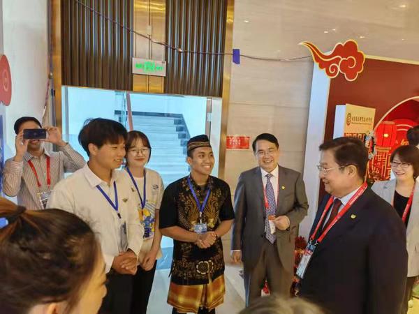 5人从4月就开始组队训练,疫情暴发后,训练从线下转为线上,他们克服困难,精心打磨,参与了赛前产品展示、现场路演和专家点评三个环节的现场展示。队员们配合娴熟,表达流畅,完美展现了扬州职大学生的专业知识、专业技能和创新创业的理念。特别是项目的绿色可持续发展的前景目标和在东盟发展的可行性,得到了现场点评专家的高度评价。中国教育国际交流协会会长刘利民和教育部国际合作与交流司司长刘锦等领导一行参观学校双创营文化墙,并与师生亲切交流。