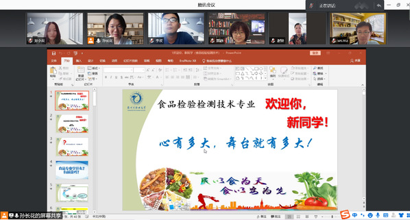 专业教育课上,系主任分别介绍了本专业的培养方案、师资力量、特色成果以及就业情况。食品系主任孙长花在介绍了系部发展史、专业优势、实验室条件等情况之后,展示了近三年各级各类专业技能大赛取得的成果。她希望新生今后努力学习专业知识,在技能竞赛活动中拼搏向上,奋勇争先。活动现场连线了优秀校友、专家、老师进行解疑答惑。大家纷纷在腾讯会议室留言互动,气氛非常热烈。