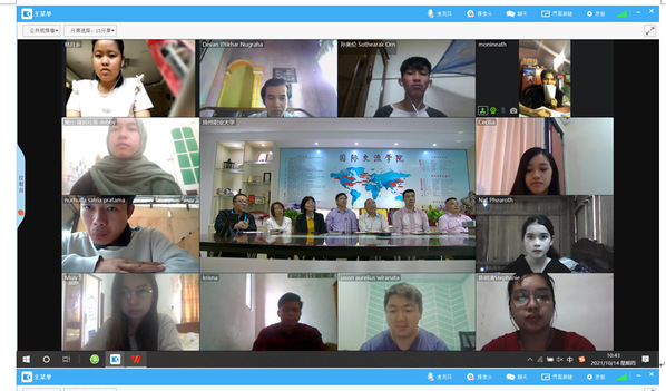 10月14日上午,必赢官网2021级留学生新生开学典礼暨入学教育通过云直播的方式举行。国际交流学院全体领导、留学生汉语教师代表、留学生班主任及22名2021级留学生新生参加了线上开学典礼。