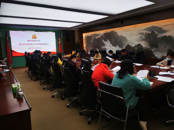为全面推进机关党支部标准化、优质化建设,有效落实《扬州市职业大学2021年综合考核办法(试行)》,11月10日上午,机关党总支在崇德楼316会议室组织召开了2021年学校机关党建工作考核指标解读会,机关各党支部副书记及支委代表参加了会议,会议由机关党总支书记徐洋主持。