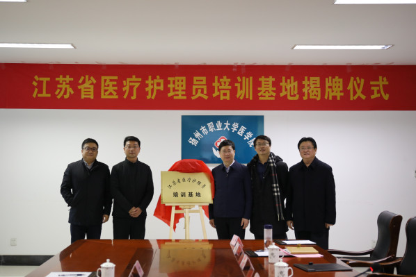 11月10日下午,江苏省首批“江苏省医疗护理员培训基地”揭牌仪式在扬州市职业大学举行。扬州市卫健委副主任尹成雷,扬州市民政局副局长徐德林,扬州市人社局职业能力建设处处长倪志峰,扬州市职业大学党委副书记、校长潘锦全,副校长刘宏,发展规划处处长袁刚,继续教育学院院长黄瑞,相关职能部门负责人,医学院班子成员及二级机构负责人,合作企业负责人和教师代表参加活动。