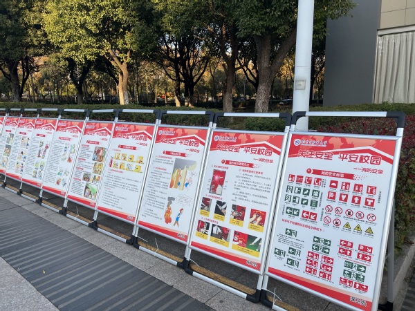 组织安全警示教育。在教学区和生活区主干道旁放置消防安全展板,展示真实案例,用身边的例子给师生敲响消防安全警钟,提高师生的火灾防范意识。同时通过大学生安全知识竞赛和消防安全教育主题班会等多种形式,积极开展消防安全宣传教育工作。