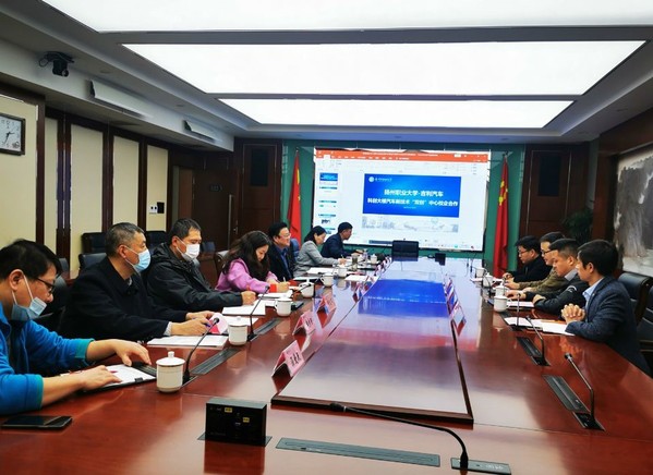 北京毅为科技有限公司华东区总监蔡磊介绍了吉利新能源汽车和扬州职大科创大楼汽车新技术“双创”中心建设方案讨论稿。双方同意在优势互补、资源共享、互惠双赢、共同发展的合作愿景上,尽快完善科创大楼汽车新技术“双创”中心建设方案讨论稿的修订,突出科创特色优势。