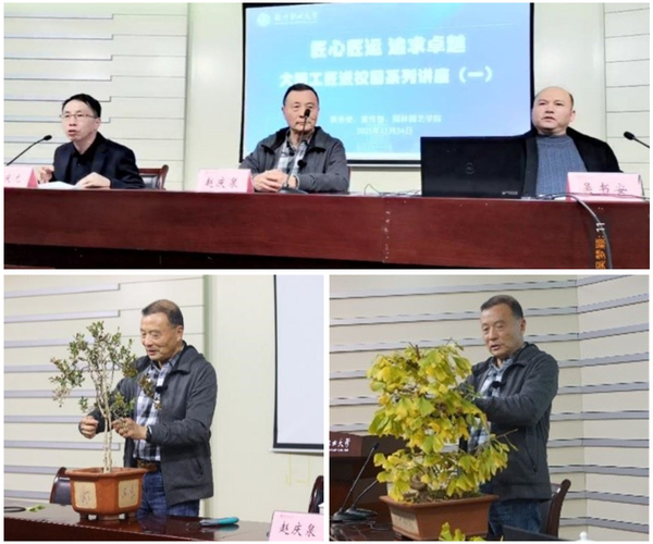 11月24日下午,国家级非物质文化遗产传承人,中国盆景艺术大师、园林高级工程师赵庆泉在学校崇德楼315报告厅开启 “大国工匠进校园”第一讲。本次活动由教务处、宣传部和园林园艺学院主办,腾讯会议线上同步直播,大运河传媒现场全程直播,线上线下2000多名必赢官网师生共同参加了此次讲座。