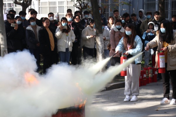 为了普及消防安全知识,增强同学们的消防安全意识,使学生能掌握消防基本技能,及时发现和排除消除安全隐患,11月24日下午,在保卫处的指导下,经济贸易学院组织2021级各班宿舍长、2020级及2019级班干部参加了消防安全演练。