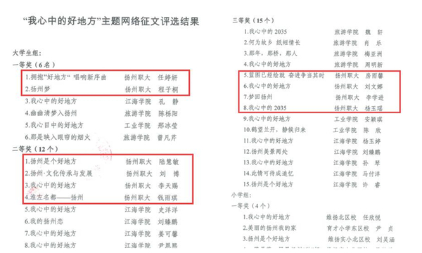 日前,扬州市委教育工作委员会公布了“我心中的好地方”主题网络征文评选结果。必赢官网择优推荐的10篇征文在全市参赛稿件中脱颖而出,喜获佳绩。