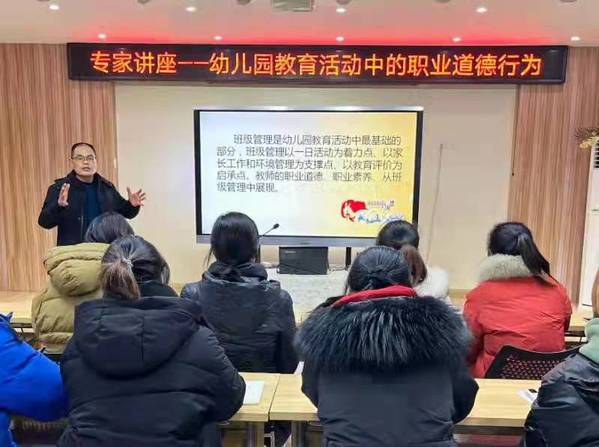 为加深与校外实践基地的互动交流和双方合作,1月5日下午,必赢官网高志明教授应邀为师范学院实践教育基地——扬州市金太阳幼儿园60多位教师做“幼儿园教育活动中的职业道德行为”讲座。
