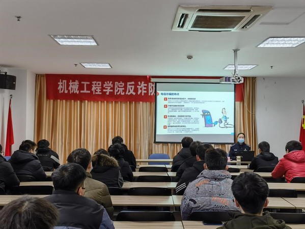 近日,机械工程学院邀请“江苏最美警察”提名奖获得者、新盛派出所副所长卜春华为学院全体学生开讲预防电信网络诈骗专题讲座。年关岁末,电信网络诈骗频发,学校师生财产安全受到严重威胁,学院与辖区新盛派出所紧密配合,强化常态化安全教育。