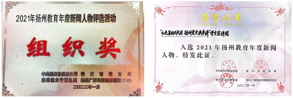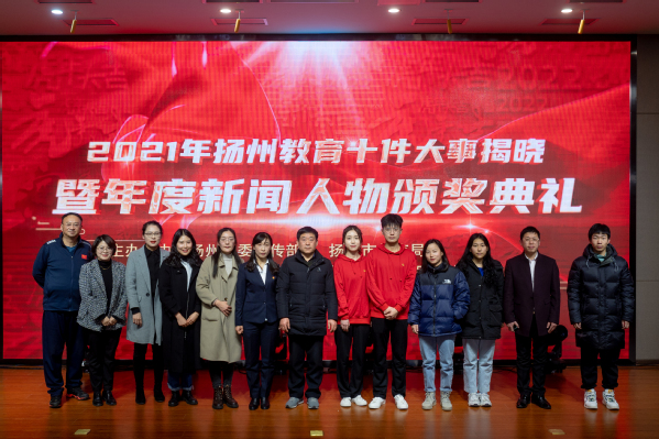 1月14日下午,由扬州市委宣传部、扬州市教育局、扬州报业传媒集团、扬州广播电视传媒集团(总台)共同举办的“2021年度扬州教育十件大事揭晓暨年度人物颁奖典礼”在扬州市教育考试院举行。