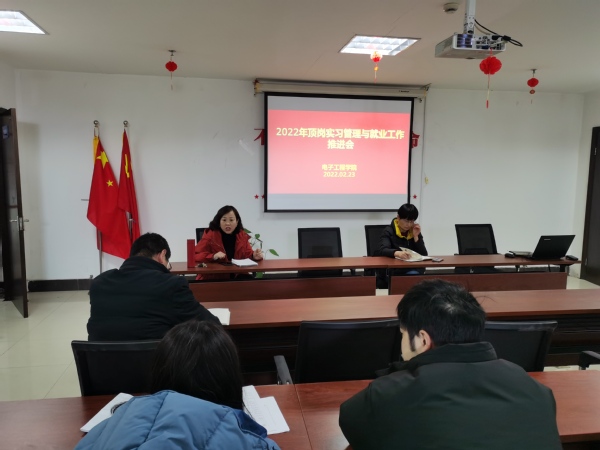 2月23日,电子工程学院召开2022年顶岗实习管理与就业工作推进会,研究和部署近期工作重点,统筹推进学院学生顶岗实习和就业工作。