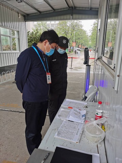 在教学区西大门,潘锦全详细了解人员出入校园情况,强调目前校园封闭管理期间人员只进不出,凡进入校园人员必须提供入校申请表并且履行登记手续,确保掌握实际进校人员情况。在生活区南大门,潘锦全检查了来访人员信息登记簿和人员进出情况。对检查发现的问题,潘锦全现场提出整改要求,要求立行立改、整改到位。