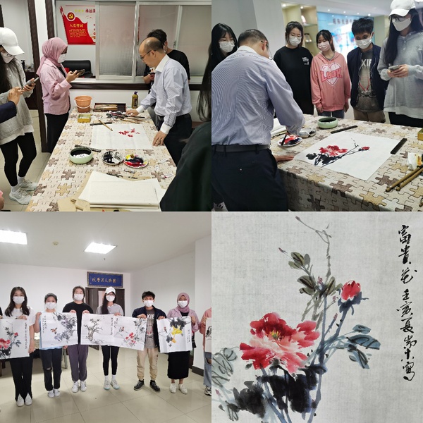 学院党总支书记陈峰利用假期教授中外学生书法与国画,介绍汉字的演变、毛笔的笔法和用墨技巧,同学们兴致盎然,感叹中国传统文化的博大精深。来自印尼的留学生Saya Fahrid(贺函)说:“中国国画只用很少的颜色就可以画出很丰富的画面,真是太神奇了!”G201护理班的李树龙同学说:“身为中国人,觉得特别自豪。我们也要多学习中国传统文化,并将其发扬光大。”