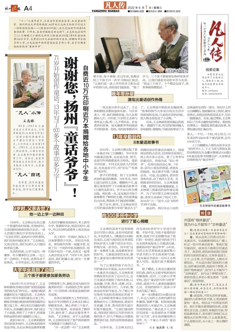 【扬州晚报】谢谢您,扬州“童话爷爷”!