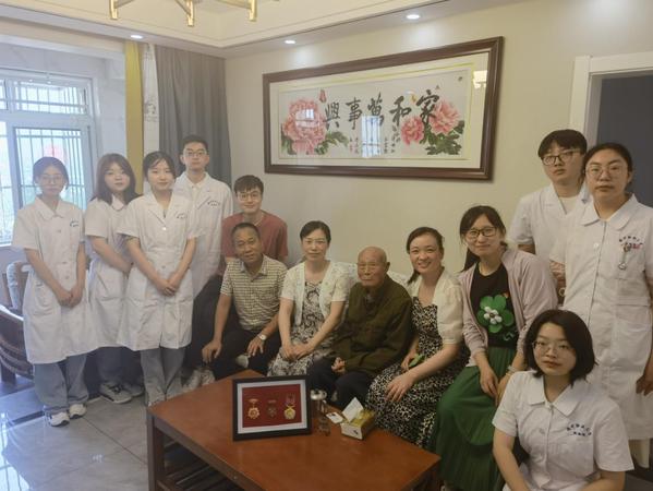 6月16日上午,医学院“红医”先锋队成员顶着炎炎烈日,来到高邮经济开发区九里村“五老”人员蒋福荣家中。医学院“聆听党史 关爱老战士”暑期三下乡社会实践活动正式拉开帷幕。