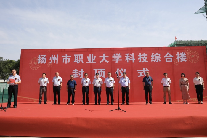 马顺圣宣布扬州市职业大学科技综合楼主体结构封顶开始。