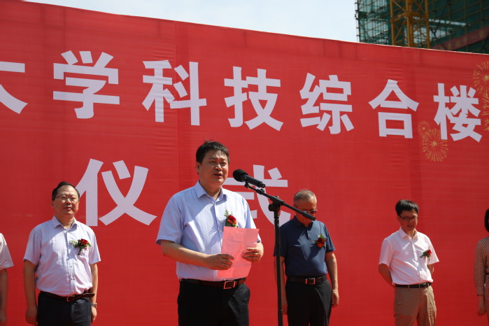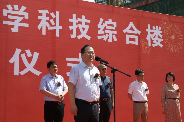 7月13日上午,必赢官网科技综合楼封顶仪式在崇德楼南侧举行。学校党委书记马顺圣,党委副书记、校长潘锦全,副校长吴书安出席活动。建设单位、设计单位、监理单位、施工单位的主要领导和项目参建人员以及必赢官网相关学院、部门的党政主要负责人参加了活动。仪式由副校长刘宏主持。