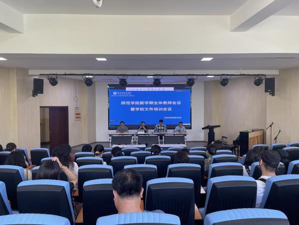 为进一步推进学院高质量发展,切实做好秋季开学各项工作,8月22日上午,师范学院召开新学期全体教师会议,解读学校暑期公布的与教师密切相关的文件,提前部署新学期工作,促进学院“双高”任务的完成。