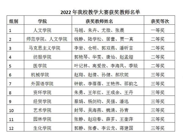 2022年江苏省职业院校教学大赛落下帷幕,经过学校、部门、学院、教师上下同心、共同努力,最终12个团队全部获奖,其中一等奖1项、二等奖4项、三等奖7项。人文学院马越老师团队和师范学院钱静老师团队还参加了教学大赛的国赛选拔赛。