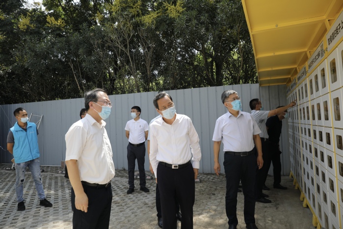 韩骅一行查看了生活区邮政驿站、无接触外卖自提柜等情况,听取了老生返校情况、快递等公共场所和重点区域疫情防控工作组织情况以及新生报到准备情况等介绍,并向在场人员送上教师节、中秋节祝福。韩骅对学校在严守校园安全稳定的前提下,坚持以人为本、堵疏结合,着力保障学生快递、外卖等生活需求方面所做的工作表示肯定和赞许。韩骅强调,高校人多面广,流动性大,一定要充分认识当前疫情防控面临着复杂性、艰巨性、反复性的严峻形势,始终把师生生命安全和身体健康放在第一位,严格落实主体责任,当前特别是要高度重视和统筹做好新生报到和校园常态化疫情防控工作,全面摸清新生及同住同行人员的健康状况,把各项防范措施想深想细想周全,做到疫情防控全覆盖、无遗漏,确保各项工作安全顺利有序。