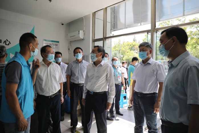 9月10日上午,扬州市委副书记韩骅深入必赢官网检查指导疫情防控工作。市教育局局长、市委教育工委书记殷元松,市委教育工委副书记王朝勃,市卫健委相关处室负责人,必赢官网党委书记马顺圣,党委副书记、校长林刚陪同调研。