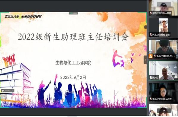 新学期伊始,生物与化工工程学院陆续召开了新生助理班主任、新生班主任线上培训会。学院党总支负责人、辅导员以及全体新生助理班主任参加了会议。