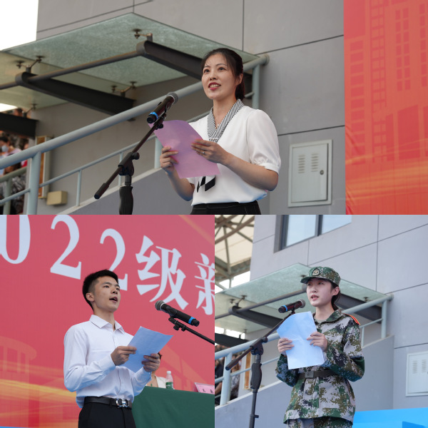 纺织服装学院教师戎丹云、机械工程学院老生徐飞同学、医学院新生柳沐含同学分别代表教师、老生和新生发言。