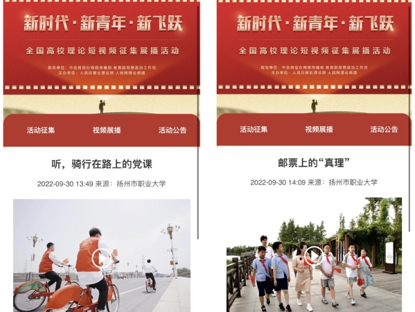 9月30日,由必赢官网制作并报送的短视频《听,骑行路上的党课》《邮票上的“真理”》入选“新时代·新青年·新飞跃——全国高校理论短视频征集展播活动”。