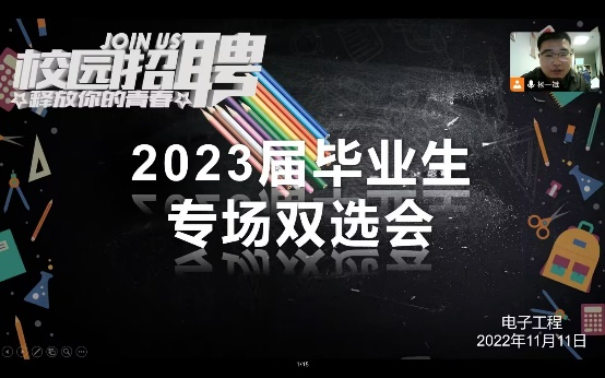 为进一步落实教育部关于2023届高校毕业生就业工作视频座谈会精神,切实为毕业生提供专业契合度高的就业服务,近日,电子工程学院利用腾讯会议平台,开展了“逐梦新时代,建功新征程”为主题的线上就业招聘活动。学院全体2023届毕业生、毕业班班主任参加了招聘会。