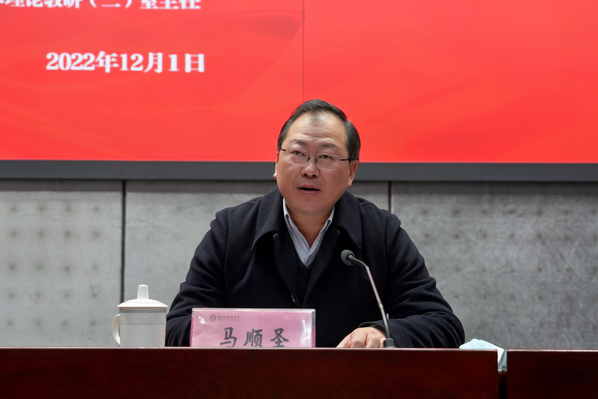 马顺圣强调,学习宣传贯彻党的二十大精神,是当前和今后一个时期的首要政治任务和全部工作的重心。学校师生宣讲团要根据学校总体部署面向全校师生开展好分众化、互动化宣讲。宣讲团成员要坚定理想信念、锤炼本领,按照中央宣讲团动员会“七个讲清楚”的目标要求,创新话语体系,增强宣讲的针对性、说服力、亲和力,将宣讲党的二十大精神与学校实际工作、与师生切身利益有机结合,做到强信心、暖人心、聚民心、筑同心。领导干部也要发挥好表率作用,带头学习、带头宣讲,不断扩大宣讲活动的覆盖面。学校广大党员师生要在全面学习、全面把握、全面落实上下功夫,全面准确理解党的二十大精神的重大意义、丰富内涵和精神实质,切实做到学用结合、知行合一。要深刻领悟“两个确立”的决定性意义,增强“四个意识”、坚定“四个自信”、做到“两个维护”,把思想和行动统一到党的二十大精神上来,让党的二十大精神在学校落地生根,结出丰硕成果。