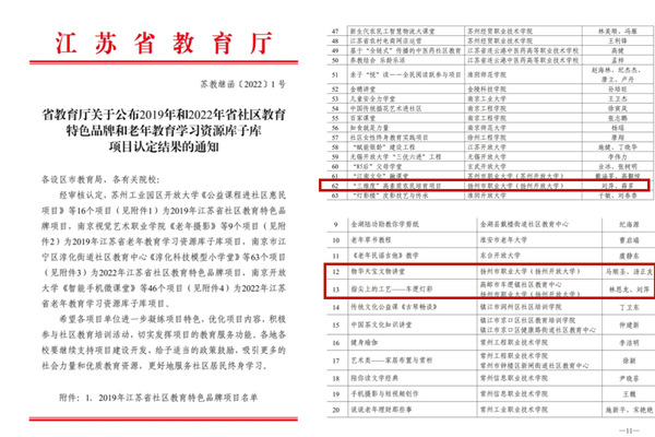 日前,根据《省教育厅关于公布2019年和2022年省社区教育特色品牌和老年教育学习资源库子库项目认定结果的通知》,必赢官网《“三维度”高素质农民培育项目》荣获2022年省教育厅社区教育特色品牌,《物华天宝文物讲堂》和《指尖上的工艺——车逻灯彩》获省教育厅老年教育学习资源库子库项目。