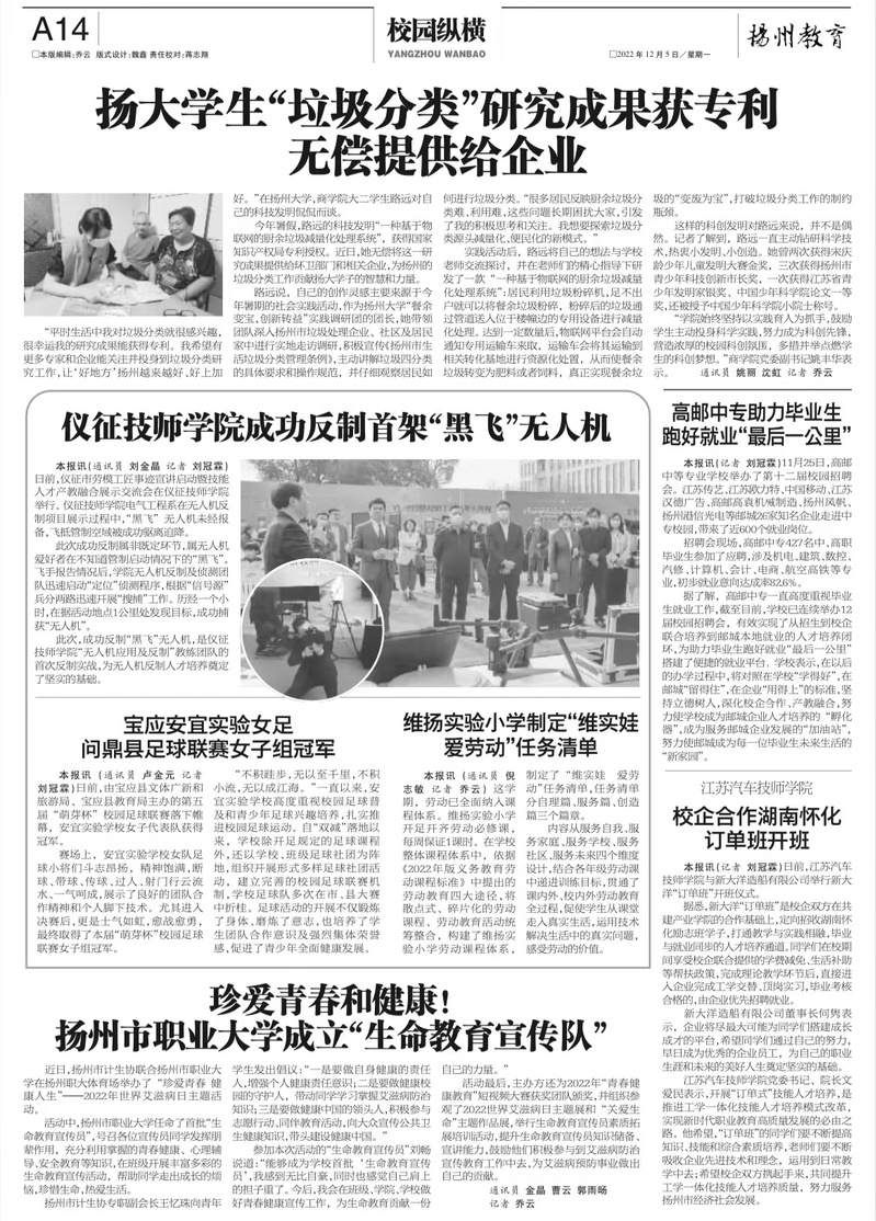 【扬州晚报】珍爱青春和健康!扬州市职业大学成立“生命教育宣传队”