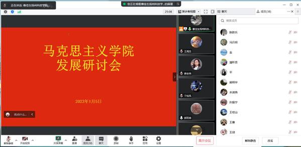 日前,马克思主义学院通过腾讯会议平台,在线召开学院发展研讨会。本次会议由学院党总支书记曹佳生主持,全体教师参加。