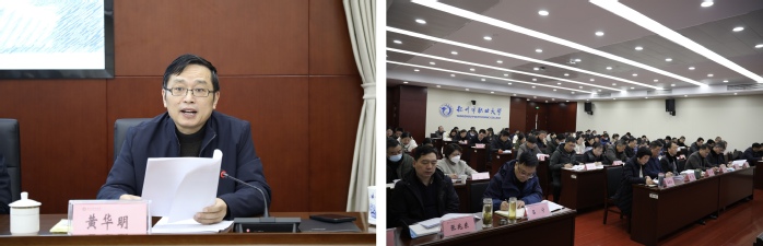 会上,纪委书记黄华明向大会作了题为《深入学习贯彻党的二十大精神,坚定不移深入推进全面从严治党保障学校事业新发展》的工作报告,对2022年学校纪律检查工作进行了总结,对2023年纪律检查工作作出了部署安排,强调要提高政治站位,严明政治纪律和规矩;聚焦主责主业,一体推进“三不”体制机制;加强系统集成,促进监督贯通协同;深化巡察整改,加强全覆盖成果运用;严格监督管理,铸造监督执纪铁军。