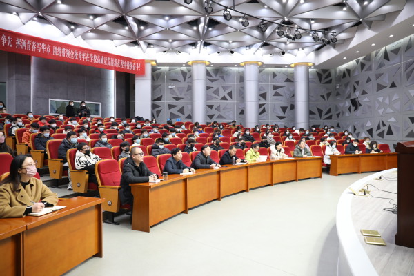 马顺圣以“凝心聚力 守正创新 以党的二十大精神引领学校高质量发展”为主题,从“深刻领会党的二十大精神”“当前学生关心的相关问题答疑释惑”“如何度过大学时光”三个方面为师生讲授了一堂意义深刻、催人奋进的思政课。他带领青年学子共同回顾了国家抗疫三年的难忘时刻,共同学习了党的二十大精神,运用一个个鲜活有趣的榜样故事、杰出校友的引领示范,教育引导广大学生培养爱国之情、砥砺报国之志,走技能成才、技能报国之路;通过一个个数据,回顾了扬州脱贫攻坚的成效,介绍了学校赋能乡村振兴的举措,生动展示了过去五年和新时代十年以来国家、地区和学校取得的巨大成就。他指出,青年是社会发展中最积极、最有生机的一股力量。青年的身上,不仅寄托着自己的未来,更寄托着民族的未来与希望。青年要以青春力量托举未来之中国,以青春梦想书写新时代篇章。他强调,每一代青年,都有自己的历史际遇和责任担当,站在历史交汇点上,不能只做这一历史进程袖手旁观的见证者,而要成为撸起袖子加油干的参与者和创造者。他要求广大师生树牢理想、满怀信心,敢于实践、勇于亮剑,矢志奋斗、不负使命,汇聚力量、乘势而上,用青春和热**写人生华章。