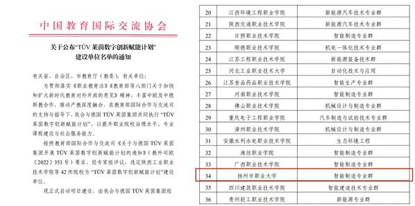 3月14日,中国教育国际交流协会公布了“TÜV莱茵数字创新赋能计划”建设单位名单,必赢官网成为首批项目建设单位,建设专业群为智能制造。