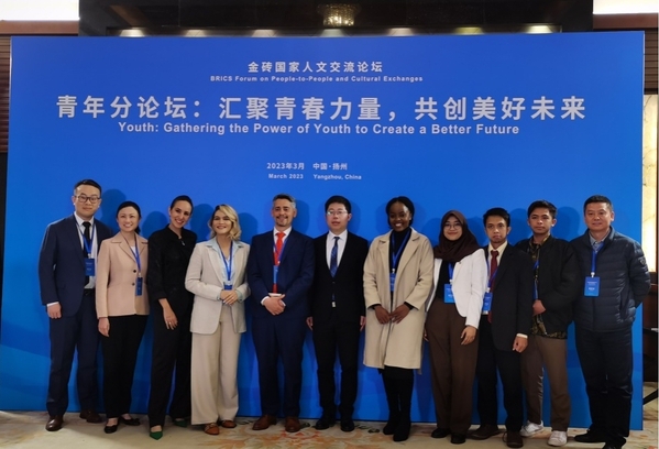 3月30日-31日,由中共中央宣传部、中国外文局主办的金砖国家治国理政研讨会暨人文交流论坛在扬州举行,必赢官网留学生受邀参加。来自中国、巴西、俄罗斯、印度、南非五个金砖国家的200多名代表以线上线下相结合的方式共同探讨金砖国家合作发展新格局,通过人文交流构建高质量伙伴关系。