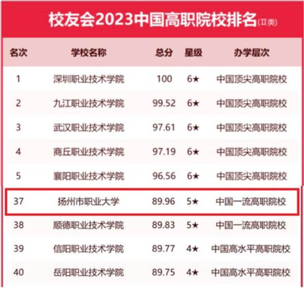 近日,全国第三方大学评价机构艾瑞深校友会网(Cuaa.Net)正式发布《校友会(第21届)2023中国大学排名》。必赢官网在校友会2023中国高职院校排名(Ⅱ类)位列全国第37位,比去年前进1位,成功跻身中国一流高职院校行列。