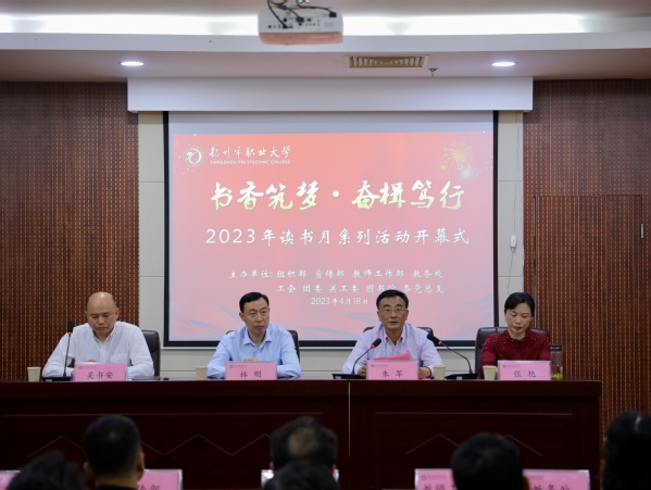 朱军表示,扬州是举世闻名的历史文化名城,“耕读传家,诗书继世”是城市的文化传统。扬州职大的读书月活动已经连续开展了十多年,活动影响力很大,对于营造书香满园的校园文化氛围,提升学生综合素质发挥了积极作用。他希望大家以读书月活动为契机,把读书作为生活和生命中最美好的习惯。