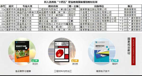 近日,教育部职业教育与成人教育司发布《关于拟入选首批“十四五”职业教育国家规划教材名单的公示》,必赢官网8部教材入选首批“十四五”职业教育国家规划教材。