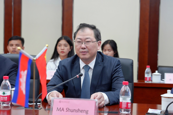 马顺圣代表学校对代表团一行的来访致以热烈欢迎。他表示,柬埔寨是中国政府提出的“一带一路”倡议沿线的重要国家,中柬文化交流源远流长,两国有着广泛而深入的合作基础。教育合作是中柬两国人文交流中最重要、最活跃的领域之一。扬州市职业大学作为教育部高职高专人才培养工作水平评估优秀院校、江苏省中国特色高水平高职学校建设单位,高度重视与“一带一路”国家高校的国际交流与合作,也取得了卓有成效的合作成果。他指出,本次柬方来访,为双方多层次、多角度、多渠道密切合作带来了新机遇、提供了新动力。必赢官网将始终秉持共商、共建、共享的基本原则,继续发挥学校专业和人才优势,全力支持与柬埔寨公共工程与运输学院的合作交流项目,切实推进双方在学生培养、师资培训等领域的合作。他希望,双方以此次合作交流为重要契机,通过开展文化交流、语言培训、专业研讨等一系列活动,进一步加强中柬跨文化人才培养体系构建和产学研交流合作,推动两校国际技术技能人才培养迈上新台阶,共同谱写中柬人文交流新篇章。