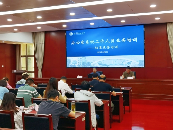 近日,2023年档案业务专题培训在崇德楼315会议室举办。扬州市档案馆(方志办)宣传教育处处长雍俊应邀做了题为《人民至上,档案为凭——扬州红色珍档拾零》的讲座。各学院、部门分管档案工作的负责同志、综合办主任及兼职档案员参加培训。校办公室主任袁泉主持讲座。