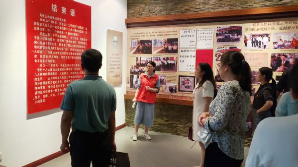 第二站来到华中雪枫大学旧址,教师们踏上这方红色土地,怀着激动的心情瞻仰了彭雪枫将军半身铜像,浏览了6000余幅有关彭雪枫烈士戎马一生的历史照片、信件、遗物等珍贵资料。通过讲解员的生动讲解,大家深刻了解到华中雪枫大学在艰苦卓绝的战争环境中,开展军事教学、宣传教育群众的革命历程,深刻感悟到老一辈无产阶级革命家的初心、使命和担当。