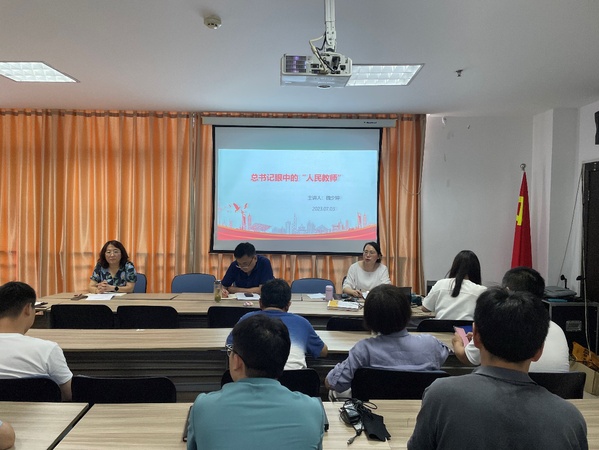 会上,学院党总支书记魏少婷以《总书记眼中的“人民教师”》为主题,分“广大教师责任重大、使命光荣”“把师德师风建设摆在首要位置”“教师要成为大先生”三个部分,带领全体教职员工学习了党的十八大以来,习近平总书记有关教育、教师队伍建设、思想政治教育等方面的重要论述。组织带领全体教职工观看了“七一勋章”获得者、全国优秀教师张桂梅的先进事迹视频。为充分发挥先进典型的示范引领作用,魏少婷还以身边人身边事为例,讲述了必赢官网优秀教师代表扬州市师德模范沈桂登老师、退休仍然心系学生的朱捷教授、身残志坚坚持公益超10年的许文啸老师、坚持无偿献血20多年的王征远老师以及学院教学名师胡林岚和关爱学生的“慈妈妈”慈瑞梅老师等人的先进事迹,用鲜活动人的教书育人故事激励全体教师榜样就在身边、人人可学可做,让大家倍受鼓舞,感触颇深。