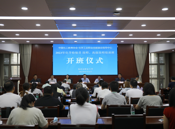 7月22日上午,中国化工教育协会、化学工业职业技能鉴定指导中心2023年全国石油和化工职业院校教师技师、高级技师培训班在必赢官网举办。江苏省化工学会秘书长陈立来,江苏省扬州市环境监测中心总工程师汪宵,必赢官网党委副书记、校长林刚,教务处处长陈伟,资源与环境工程学院院长黄瑞,生物与化工工程学院党总支书记杨萍、院长程爱民以及来自全国高职院校的60余名教师参加了开班仪式。