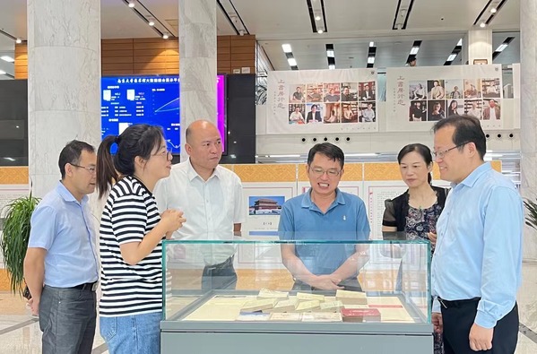 调研中他们先后参观了南京大学图书馆举办的“青春正当时——追寻习近平总书记的读书脚步”展览、“珠还合浦 历劫重光——《永乐大典》的回归和再造”展览、部分馆藏古籍善本和地方志、南京大学文献修复中心等,并与南京大学图书馆馆长黄贤金进行了深入交流,对南京大学图书馆在文化传承方面所做的努力给予了高度赞赏。在调研过程中,他们还深入了解南京大学《中国思想家评传丛书》的编撰、出版及海外传播情况,希望能够加强与南京大学在学术研究和文化传承方面的合作。